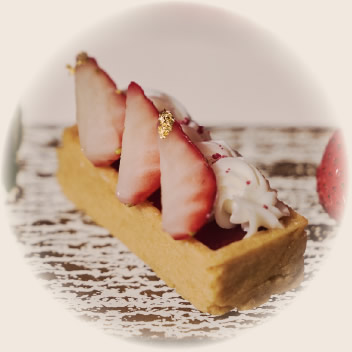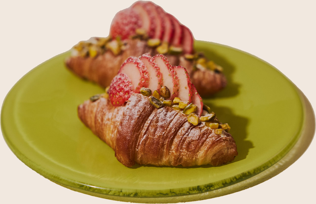濃厚でミルキーな練乳クリームと甘酸っぱいいちごを溢れんばかりにサンドしました。ピスタチオの香ばしい風味と食感がアクセントを添える華やかな一品です。