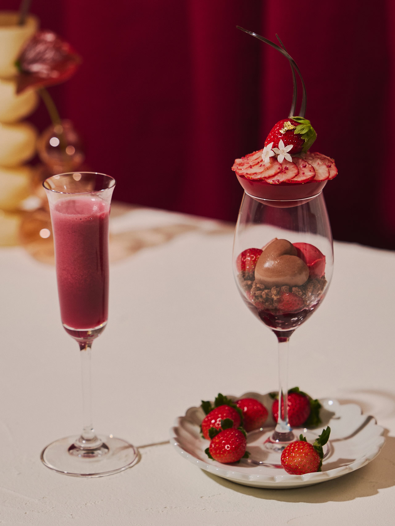 艶やかないちごとハートのショコラアイスが織りなす、とろけるような甘美なひとときを堪能するパルフェ。