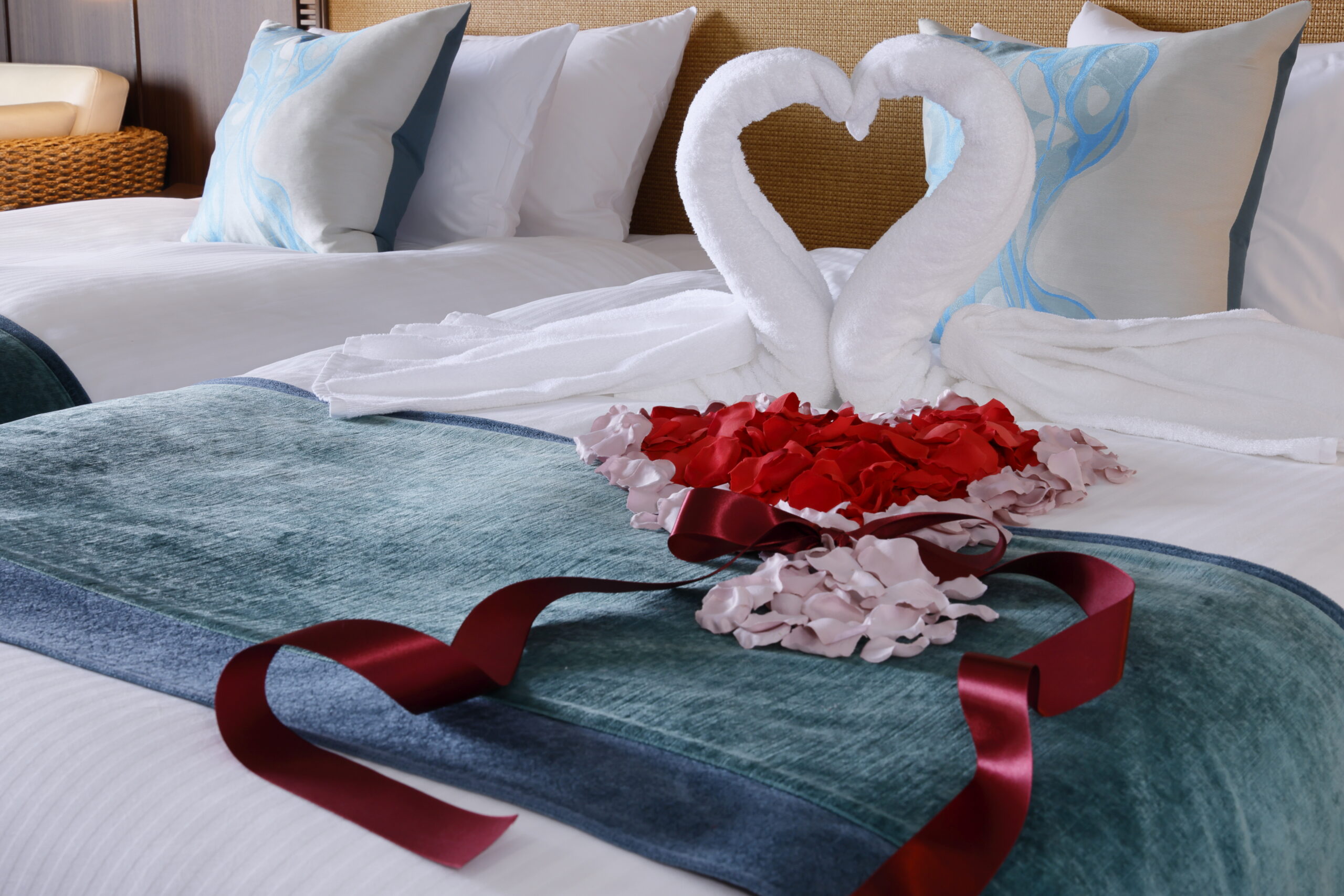 ベッドでは可愛いスワンが二人の記念日を祝福します。