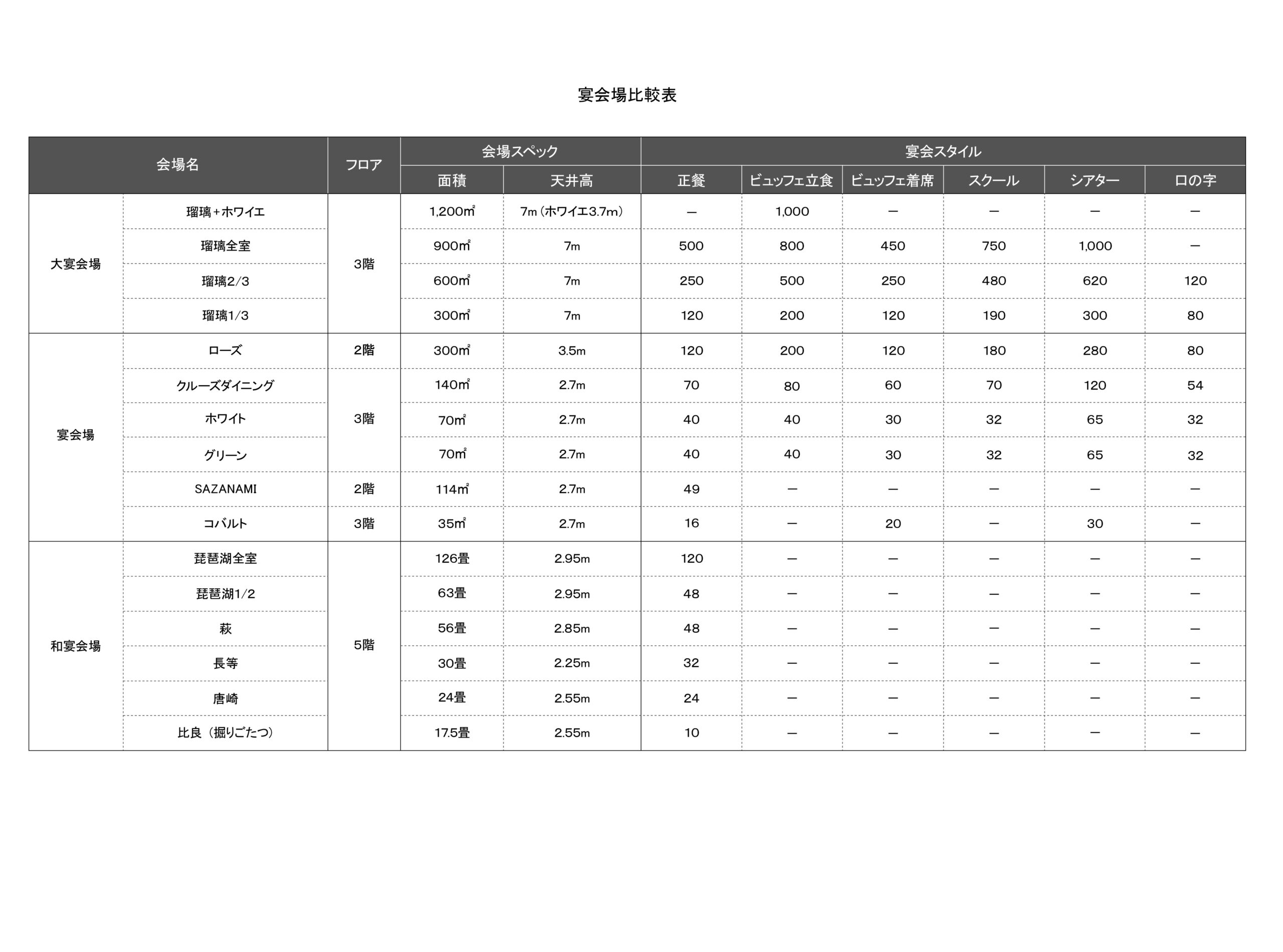 宴会場比較表