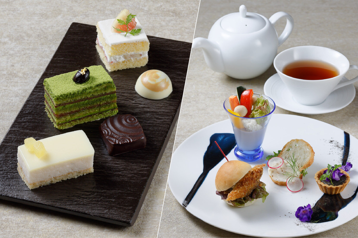 パティシェが丹精を込めて作ったホテルメイドのスイーツを、お好きなコーヒー・紅茶とともにお楽しみいただけます。