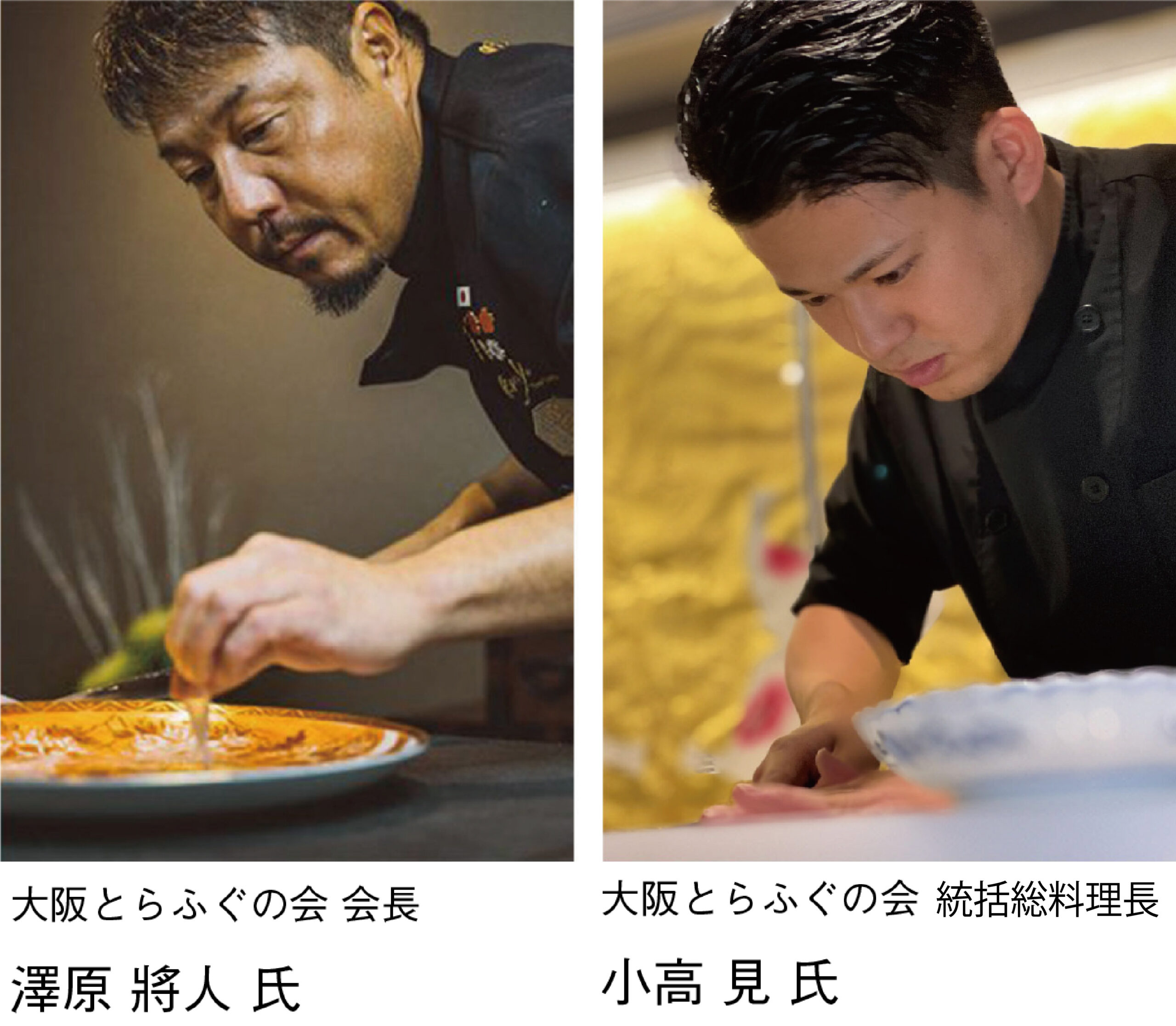 大阪とらふぐの会グループ会長。ふぐ料理専門店7店舗4業態を展開し、長年にわたり「ふぐ一筋」を貫く。ニューヨークでの出店、シンガポールにおけるプライベートダイニングの開催など、国内外において精力的に活動。2025年大阪・関西万博では大阪ヘルスケアパビリオンならびにインドパビリオンにて「とらふぐアンバサダー」として登壇。常にふぐの研究に励み、焼ふぐをはじめとする独自の料理で、名だたる食通たちの「ふぐの概念」を覆し続けている。