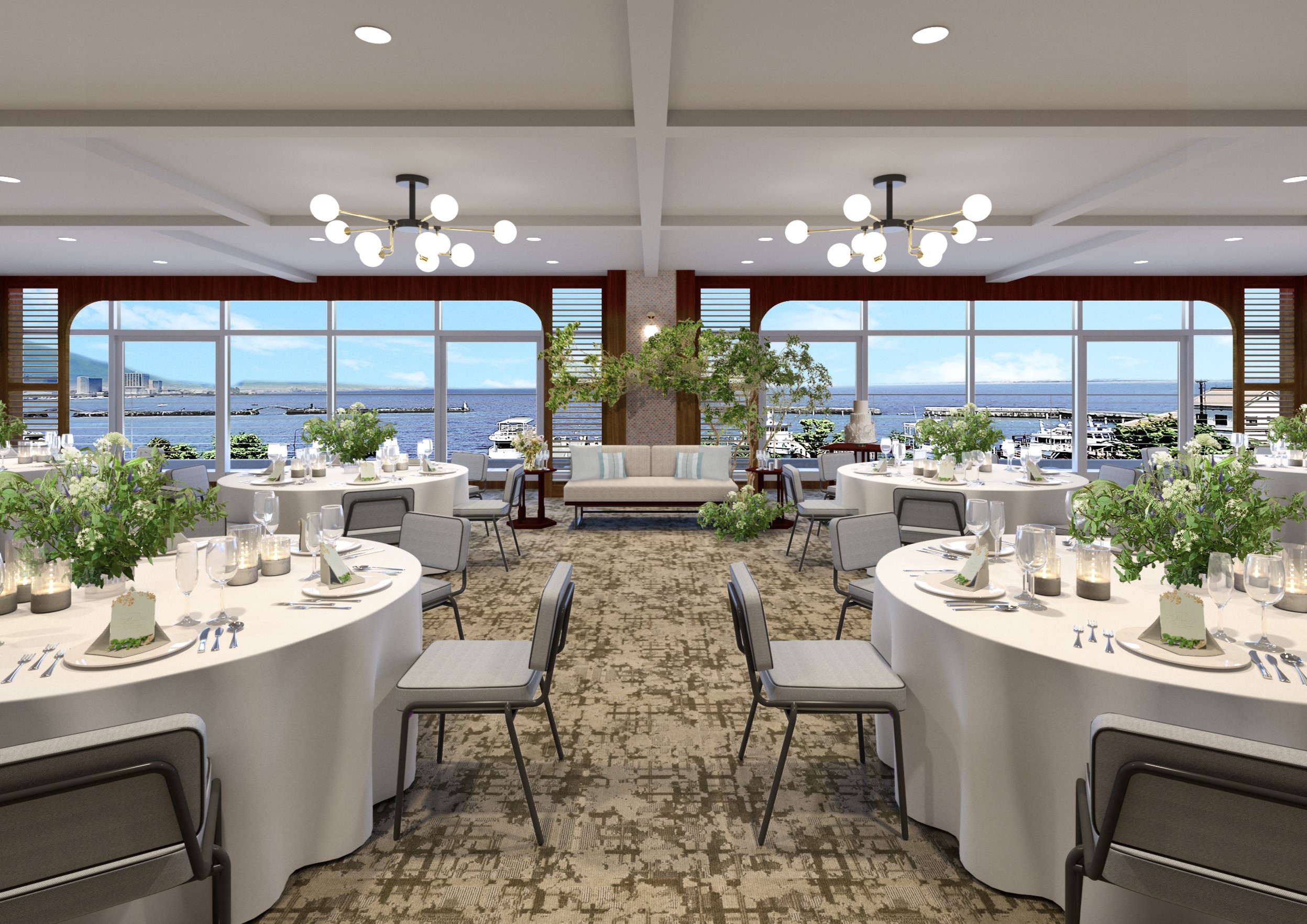 • ● 湖と空に溶け込む“CRUISE DINING”をテーマにした「クルーズダイニング」の