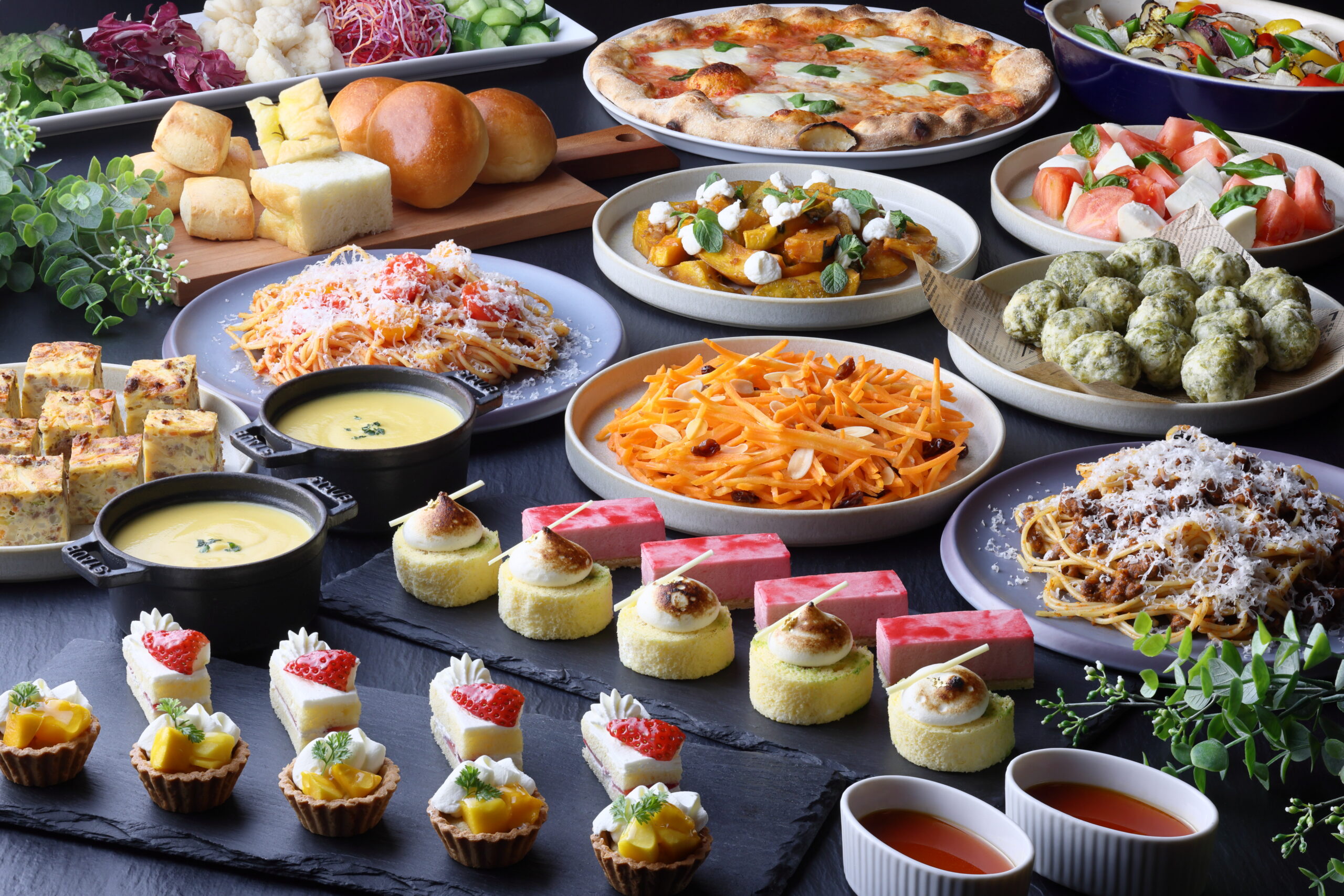 出来立てのイタリア料理をビュッフェスタイルでお楽しみいただけます。 本格的な釜で焼き上げたピッツァやスープ、デザートも充実しており、お子様からシニア世代まで楽しめる幅広いラインアップです。家族連れやグループ利用にもおすすめ。