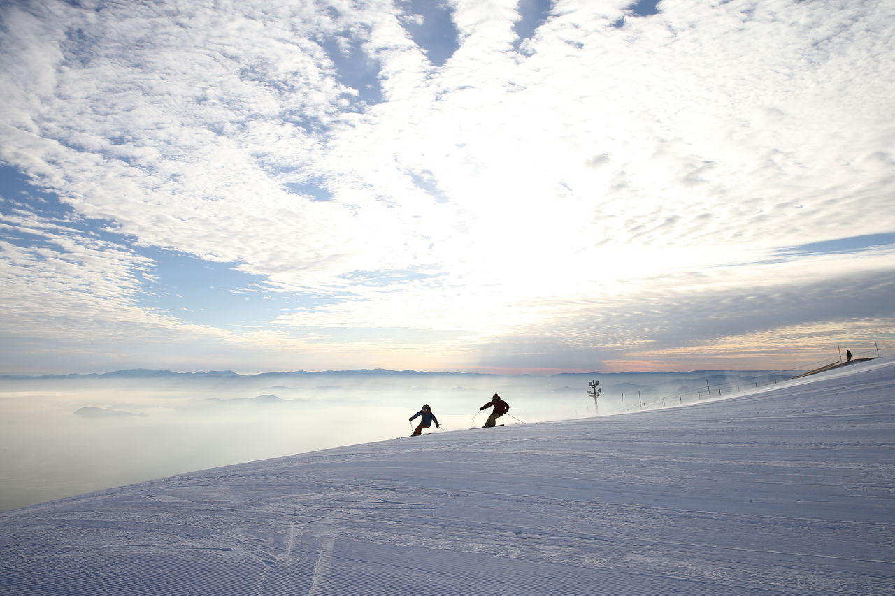 標高1,100mのゲレンデから琵琶湖を見下ろせるスキー場「びわ湖バレイ」。雪景色の中、ロープウェイで山頂へ上がれば、同施設内の絶景スポット「びわ湖テラス」から、冬ならではの澄んだ空と湖のコントラストを楽しめます。キッズ向けエリアも充実しており、ファミリーで一日たっぷり遊べる人気のウインタースポットです。