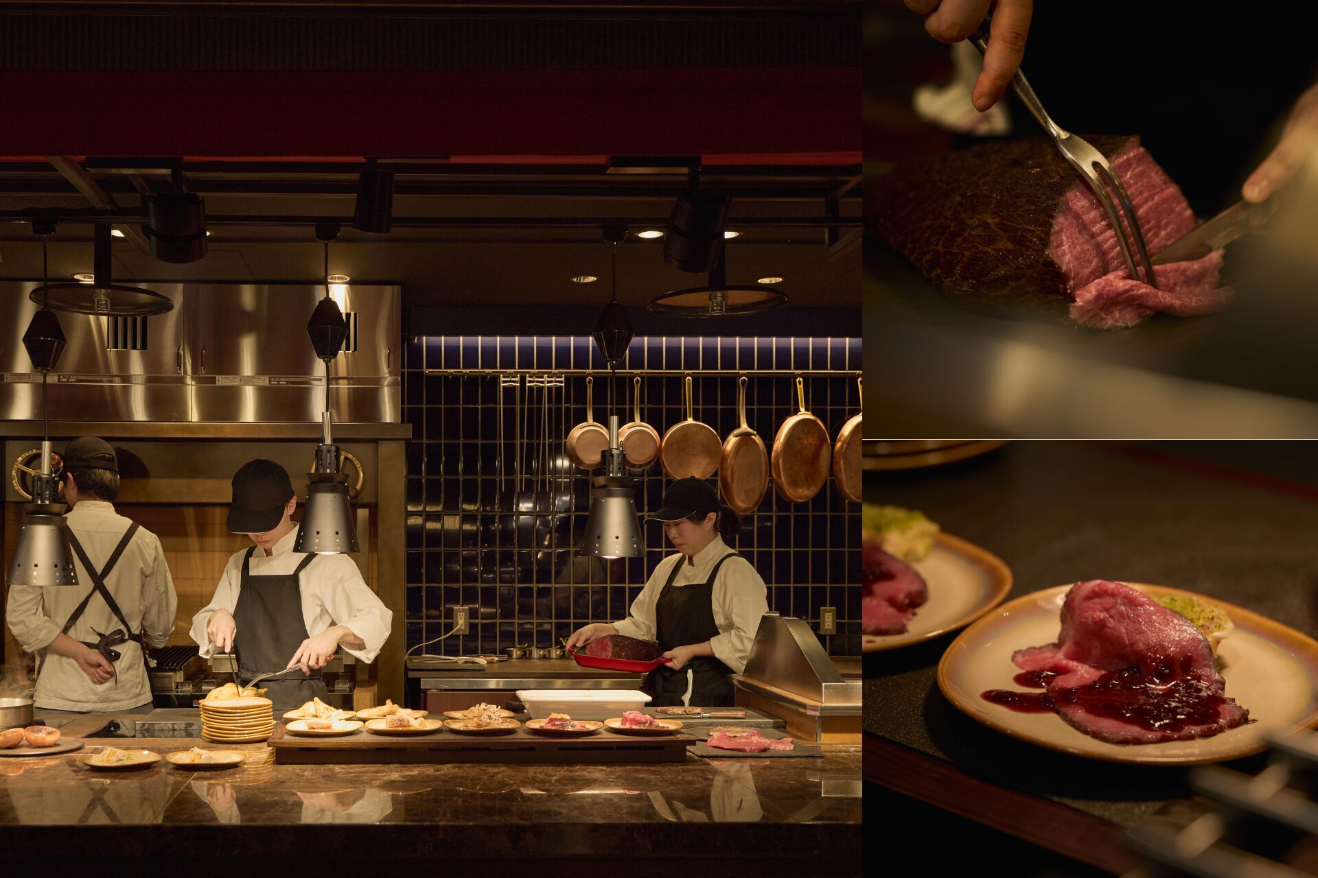 パフォーマンスコーナー「MEAT THEATER」では、ランチ・ディナーとともに和牛を使用したメニューをはじめ、多彩な調理で仕上げる肉料理が30分間隔で登場。