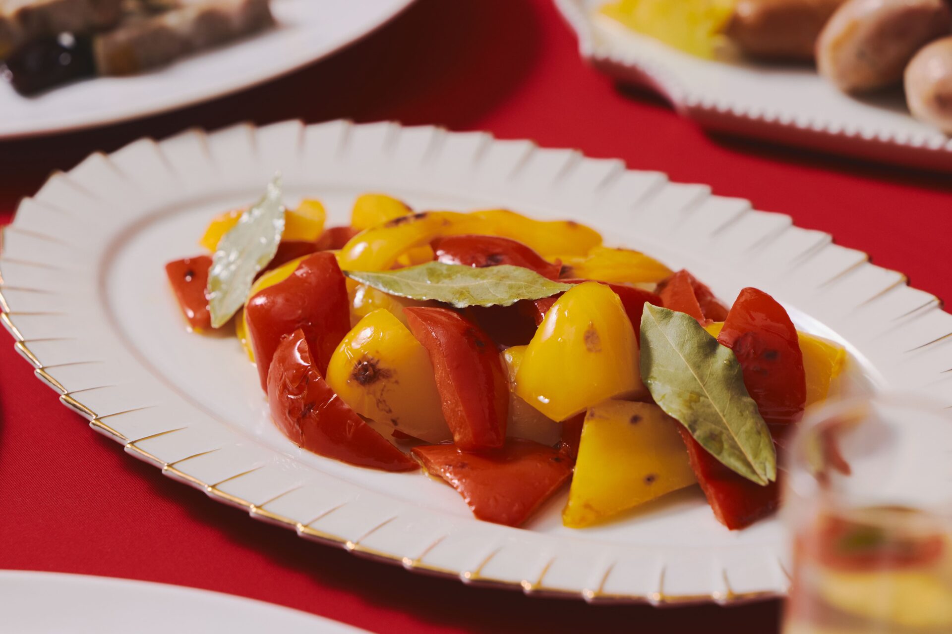 香草の香りを移したオイルで低温からじっくり加熱して肉本来の旨味を内側に閉じ込め、太陽をたっぷり浴びた野菜の甘みが凝縮されたシチリアの郷土料理「カポナータ」を合わせました。濃厚なコンフィと爽やかなカポナータが織りなす、味わいのコントラストが光る一品です。