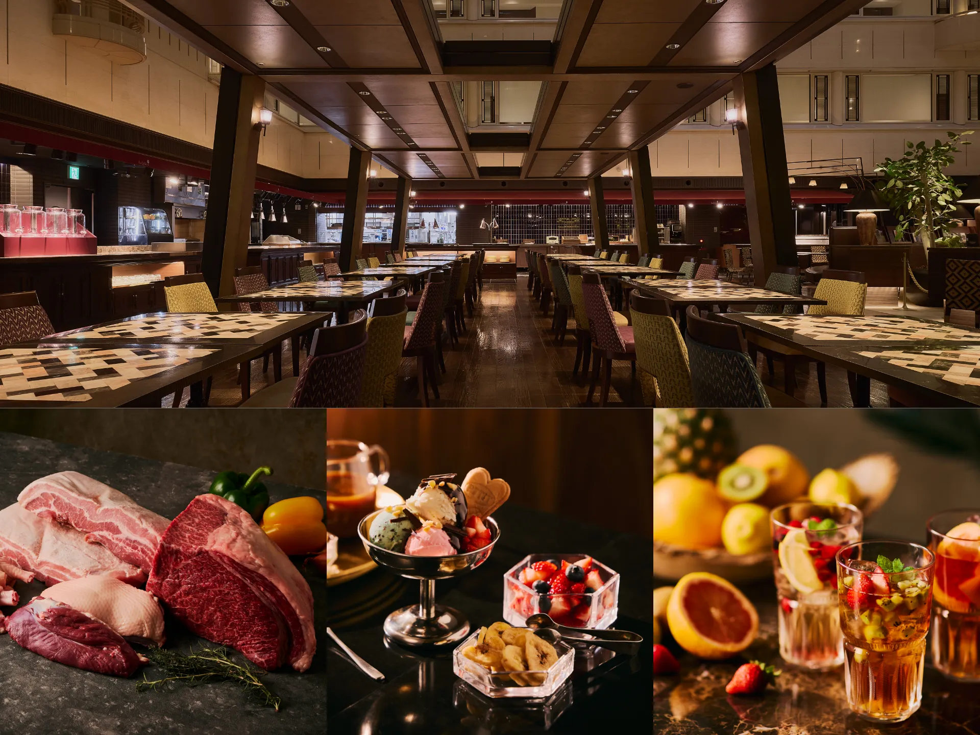 「La Jyho Live Kitchen」では、新ビュッフェ「THE THEATER BUFFET(ザ・シアター・ビュッフェ)」を通年で開催。ビュッフェエリアの目玉となるパフォーマンスコーナー「MEAT THEATER(ミートシアター)」では、ランチ・ディナーとともに和牛を使用したメニューをはじめ、多彩な調理で仕上げる肉料理が30 分間隔で登場。