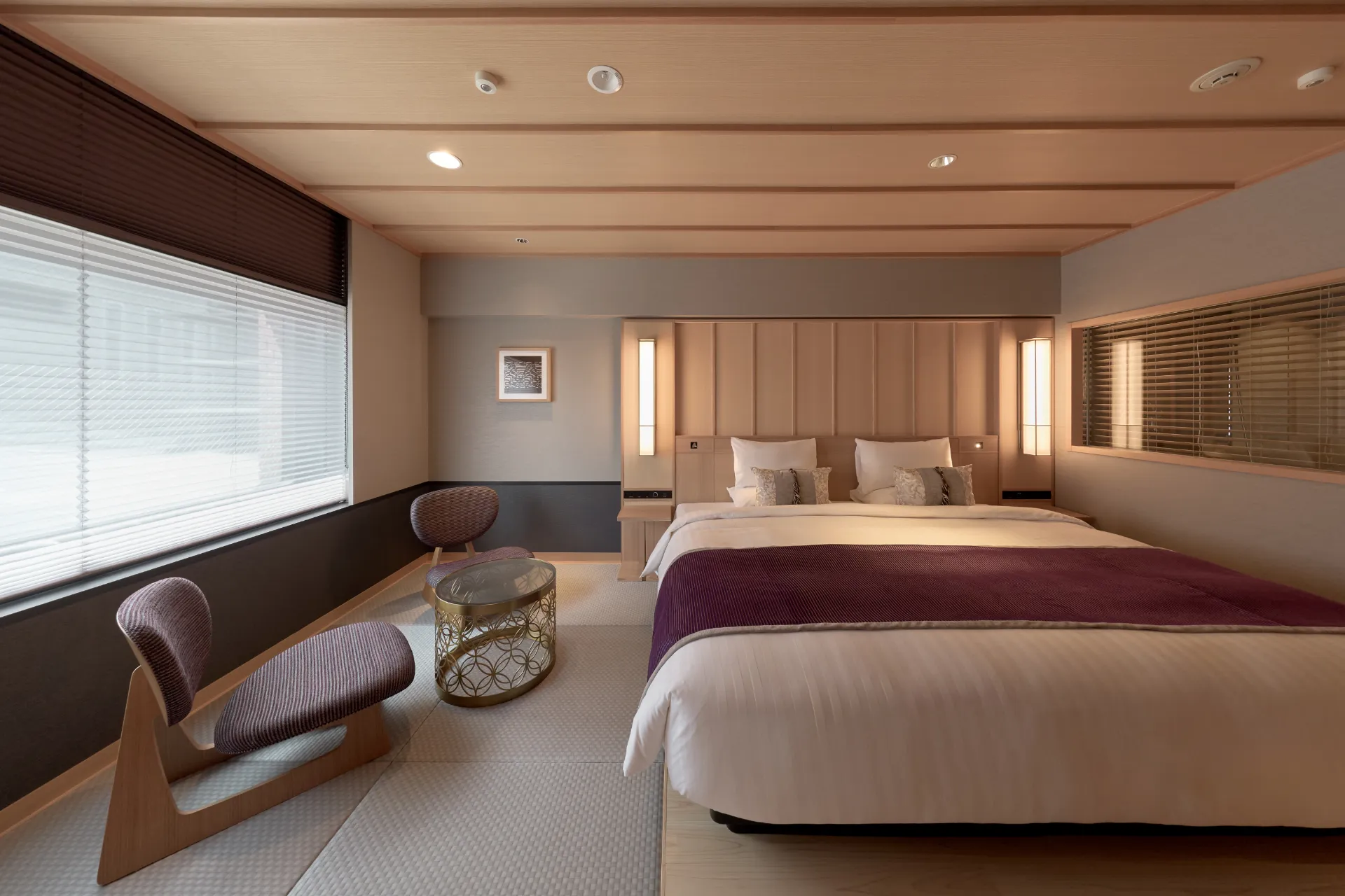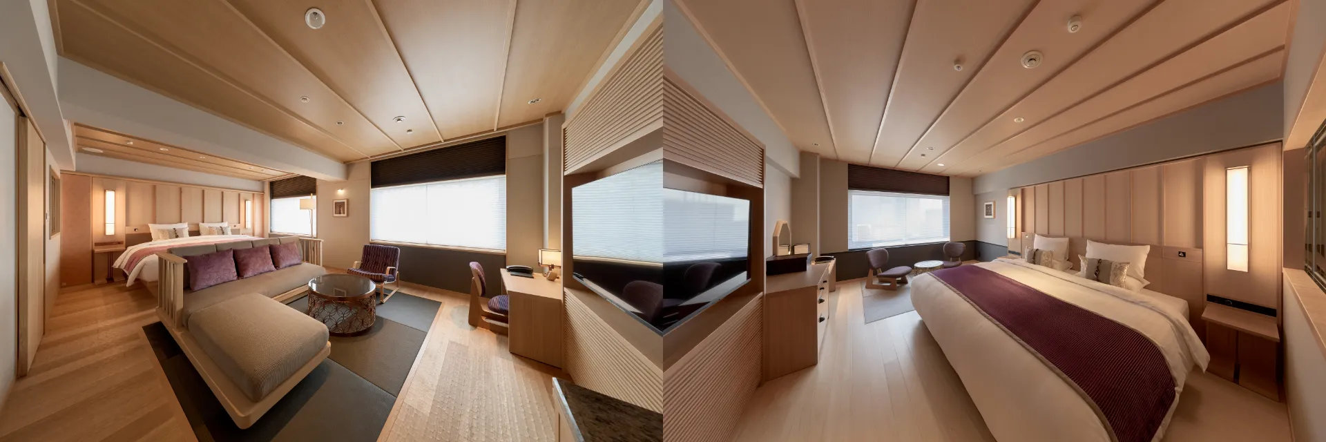 京都らしい設えが好評の「京プレミアム」に登場する新たな2タイプの客室は、日本文化の象徴である、靴を脱いで過ごせる「床座」の心地よさを大切にしています。