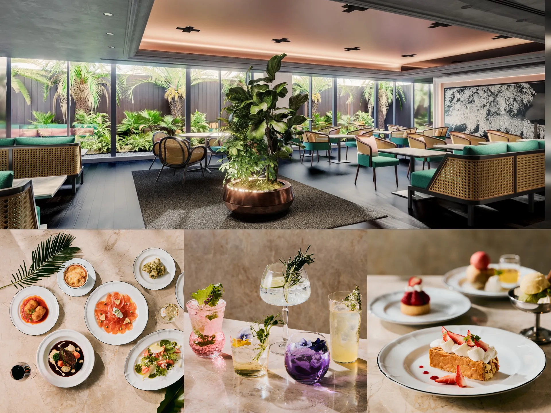 室内でありながら光あふれる開放感に包まれたお席では、カジュアルかつホテルメイドの洗練されたフレンチをメインに、コース料理とアラカルトメニューでご提案。都会の喧騒を忘れてゆったりと食事や会話を楽しめる、上質なラグジュアリー空間です。