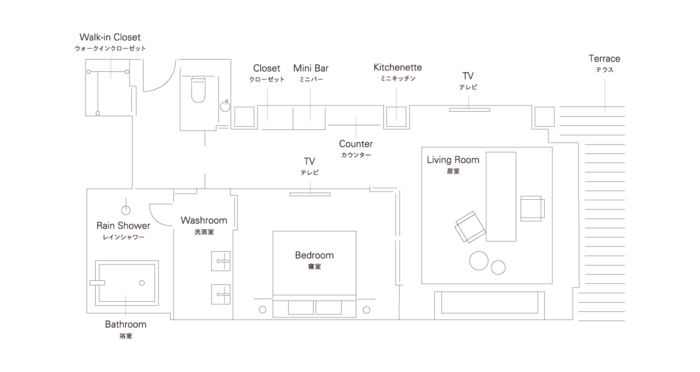 ミネラルウォーター/お茶セット/セーフティボックス/電気ポット/タオル類(バスタオル、フェイスタオル、ハンドタオル)/バスローブ/パジャマ/スリッパ/体重計/加湿空気清浄機/ヘアドライヤー/シャンプー/コンディショナー/ボディソープ/固形石鹸/ボディローション/シェービングフォーム