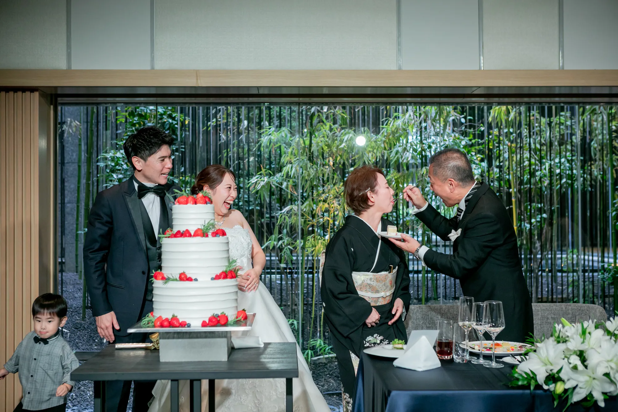 これまで大切に育ててもらった両親に、普段は照れくさくて言えない「ありがとう。これからもよろしく」という気持ちを、どうしても伝えたいと思っていました。その想いから、ファーストバイトは両親にお願いしました。